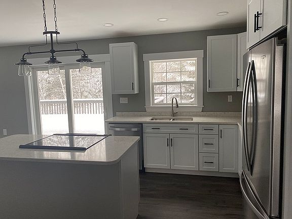 FOR SALE BY OWNER: Freshly renovated 4-6 bedroom, 2.5 bathroom newer construction colonial style home, situated on a beautifully wooded 2.6 acre country lot, and located just 2.5 miles from Steadman’s Landing on pristine Sebec Lake, 1.5 miles from Foxcroft Golf Club, and 3.5 miles from the heart of downtown, in Dover Foxcroft, Maine. This home offers the peace and tranquillity of quiet country living, while still being within quick reach of every in-town convenience. The light and airy layout provides an informal entry through the attached garage, or a more formal entry into the front foyer. Garage entry includes a large coat closet and 1/2 bath. Floor plan flows into a bright and beautiful open concept kitchen and family room, featuring brand new white cabinetry, beautiful white and gray quartz countertops, brand new stainless steel appliances, classic island, and a walk in pantry, along with propane fireplace and plenty of large glass, leading out to a spacious back deck and welcoming an abundance of gorgeous natural light. The main floor also includes a formal dining room with board and batten detail, den, and an additional large coat closet nestled into a soaring stairway from the front foyer. The second story features a large master suite with cathedral ceiling and en suite bath and laundry, as well as a walk in closet, along with three additional bedrooms and a full bath. Lots more comfy living space makes up the finished basement, including a large family room and either 2 additional bedrooms or limitless other possibilities...a workout room? A home office? An entire home based business operation? So many options! This home is finished with brand new flooring, paint, lighting, and fixtures throughout. Asking $325,000 Please text/call 207-557-4314 for more information or to schedule a showing.