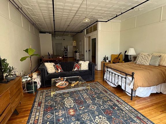 Large and bright studio apartment in the heart of downtown. Huge windows overlooking Main St and the Children's museum. Hardwood floors, original tin ceilings, newly installed heat pump, walk in closet, in-building laundry, heat, hot water and electricity all included. If you'd like set up in person showing, please fill out an application. Heat, hot water and electricity all included in the rent. Cat allowed with a pet deposit.