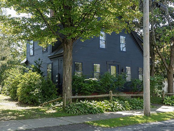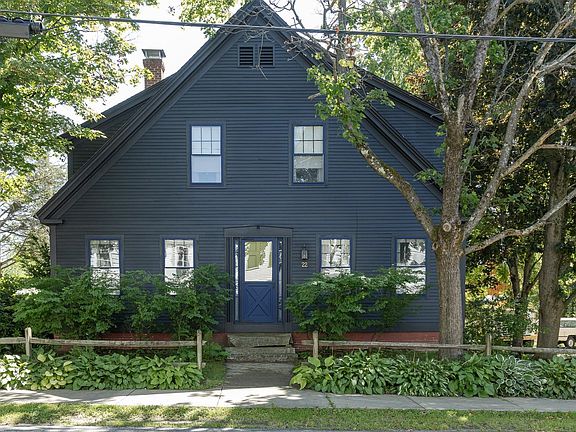 Offer deadline 04/29/2024 11 AM.This true New Englander style design has a symmetrical front entrance with four windows flanking the front door and two windows up, yet the asymmetrical intersecting gabled roof lines gives the home interest. Enjoy the classic elegance and heating efficiency of the Living room’s Rumford fireplace, wood floors throughout, open kitchen and family/den area with built-ins, and formal dining room. All three bedrooms are upstairs and there an office/exercise room off the primary bedroom. The bathroom has a claw foot tub, which is great for soaking. The desirable location with sidewalks makes this an easy walk to downtown, still the mature landscaped yard, grape arbor, and garden area provides a secret garden feel. There is a deep side porch and an attached 1-car garage. This home exudes historic character while providing ample opportunities for modern living.