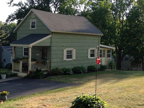Charming house on a beautiful .39 acre lot. Great location, Has everything you need. Shows with pride of ownership. Very economical with natural gas for heating. Roof and windows 2 years. Heating system & water tank 6 years. Shed 2016. Kitchen with dining area, full bath, den (or 2nd bedroom) & Cathedral ceiling in living room. An enclosed porch that offers a great additional space to enjoy. The master is on the 2nd floor and opens to the cathedral ceiling in the living room. Reminds me of an A frame home. Come take a look. It really is such a charming home with great curb appeal.