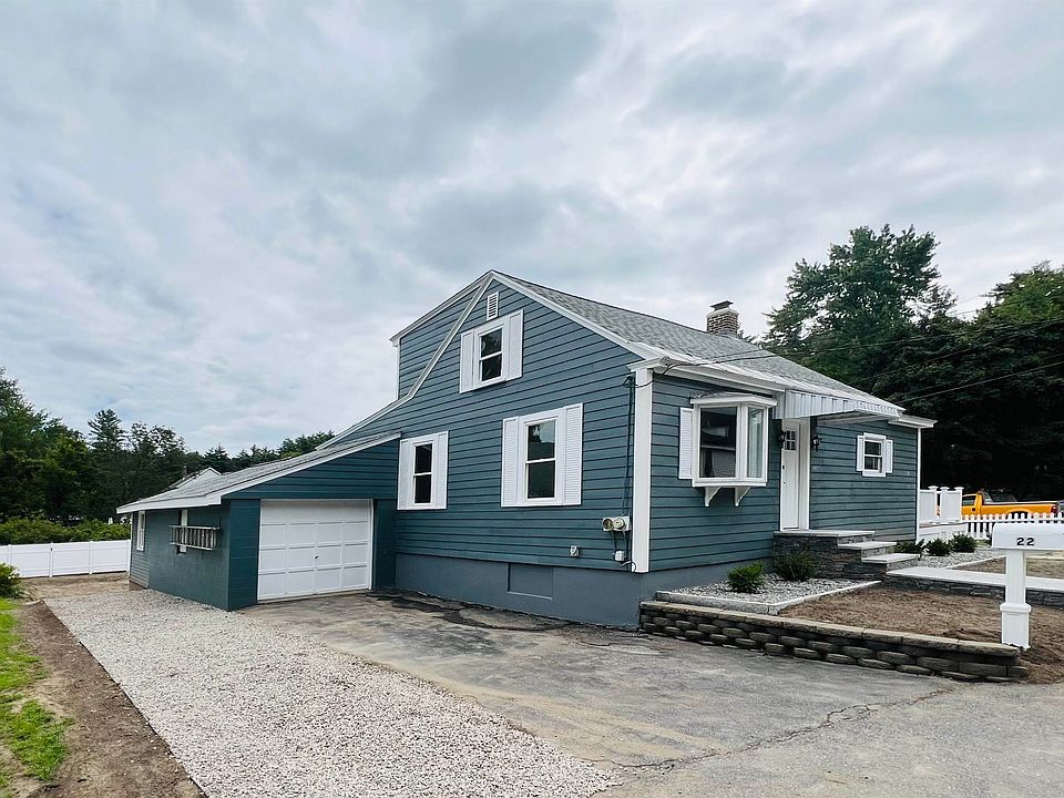Welcome to 22 Curtis Ln, a remodeled Cape in the desirable town of Bedford, located on a quiet, dead-end street. This modern home is sure to excite you with its contemporary features. Upon entering, the first floor features a spacious living area with a wood-burning stove, a dining room with a brand-new kitchen boasting granite countertops, a modernized bathroom, and a primary bedroom with a walk-in closet. Also, the first floor offers an additional bonus room ideal for an office, workout, or potential bedroom. New hardwood floors throughout the house add warmth and sophistication to every room. The second floor hosts two comparable bedrooms with plenty of closet space and a remodeled half bath on one of the rooms. The finished basement offers even more living space and a three-season room, allowing natural light to fill the space. It also has access to a new patio and a huge fenced backyard, where you can enjoy barbecues with friends and family and relaxation in a spacious yard. The new deck adds more leisure space. A new septic tank and leach field were installed in July 2024. This home is mint and ready to be moved in.