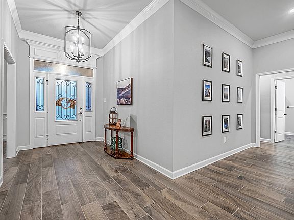 Don't wait to long to view this one, home is still like Brand New, but beautifully decorated. 4 bedroom 2 1/2 Bath consist of 10' ceilings in the main living area and 9' ceilings in the rest. Stunning trim work throughout the home. Beautiful entrance with a formal dinning to the right as you enter that opens up to a huge Living Room, dinning and super nice kitchen with Gas range/griddle, granite tops, tile backsplash, pantry cabinet with roll out drawers, Huge master bedroom with a Master bath and closet that will leave you speechless. Large back porch to sit and enjoy the peaceful woods and wildlife, no one behind you. Golf Cart Garage door with oversized garage. All of this on a Big 104 x 155 lot. Sellers wish they could just pick it up and move it with them, due to a relocation that is necessary. Call to see this one today, sq ft est., pls measure