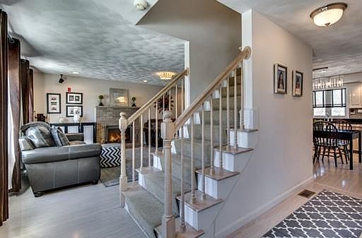 SKYWOOD ACRES ~ THE ADDRESS YOU HAVE BEEN WAITING FOR! Welcome home to this beautiful 4 bedroom 2 full 2 half bath BRICK FRONT COLONIAL in a RARELY AVAILABLE NEIGHBORHOOD. Kitchen features bright white cabinets & stunning granite countertops as well as stainless steel appliances & a wine fridge. Relax or Entertain in the open concept family room w/focal point wood burning fireplace. Second floor has three generous sized bedrooms including a MASTER BEDROOM SUITE w/ walk in closet & bath featuring a marble vanity and new tiled shower. Finished third level includes huge 4th bedroom or rec room/office w/window seats & lots of storage. BONUS SPACE in the recently finished basement has a large entertaining area, wet bar and 1/2 bath. Huge Composite Deck leads to a fully fenced yard perfect for warm weather entertaining & activities. Additional highlights include a sprinkler system and new roof (2013). ALL OF THIS AND ONLY 9 MILES FROM BOSTON!