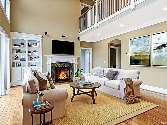 FABULOUS 5-BEDROOM WATERFRONT RESIDENCE! Extraordinary custom home w/direct water access & breathtaking views of 47-acre Darrow Pond. Nestled on private cul-de-sac on one of the most sought-after streets in town, this home is beautifully maintained & move-in ready. Meticulous attention to detail. Geothermal & Solar provide significant utility savings avg. only $129/month! Spacious 2-story foyer flows into open floorplan w/fine architectural millwork. Light-filled great room w/20-foot ceilings & fireplace opens to chef's kitchen w/island, granite counters, double ovens, wine cooler, eat-in dining area & access to deck. Main floor complete w/ensuite guest bedroom, full bath, formal dining room, office, mudroom w/built-ins, & large walk-in pantry. Elegant duel staircase elevates you to magnificent master suite w/spa-like bathroom & well-appointed walk-in closet. Additional 3 bedrooms, all w/direct ensuite bathrooms offer abundance of space & options. Convenient upper level laundry & walk-up attic. Finished walkout lower level w/11-foot ceilings adds 720SF w/rec room, home theatre, half bath, sliding doors, & water views. Lower level could also be reimagined as an in-law apartment. Attached 3-car oversized garage, irrigation system, central vacuum, generator hookup & security system finish checking all the boxes. Minutes from I-95, town beaches, elegant shops, superior restaurants, state forests, yacht clubs, golf course, outdoor centers & top-rated schools. Exceptional value! Gradual slopping backyard leads to a lightly wooded path to your private water oasis. Enjoy fireside chats, kayaking, ice-skating, or just soak in the views along your own water front on Darrow Pond. See attachments for full list of upgrades & improvements.