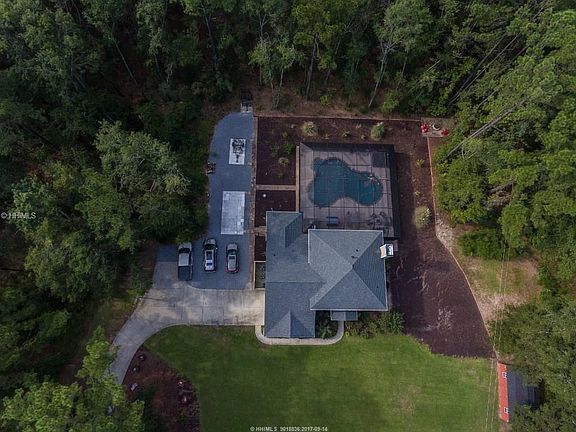 Imagine country club living on your own private estate without the country club dues! This property is for the family that wants it all, but does not want to live in a community with POA fees. This beautiful and spacious 3200 sq ft home sits on 4.21 acres conveniently located near 170 and 278. Four bedrooms and 3 full baths plus a bonus room with pool table included! The outdoor space is for the family that loves a pool. The pool ranges up to an 8-foot depth and the entire pool, patio, hot tub and grill area are enclosed by full screen porch that is actually larger in area than the entire home. Outside also has two storage barns with one being designed to house a 19' boat and trailer. Property is steps away from Bluffton's newest and most sought after elementary school, River Ridge Academy and in the May River High School system. This is a must see property.