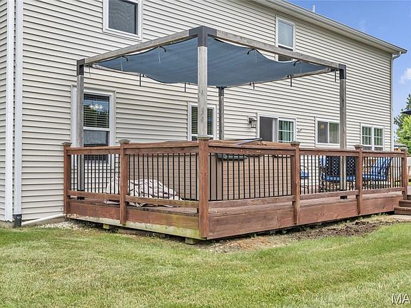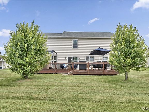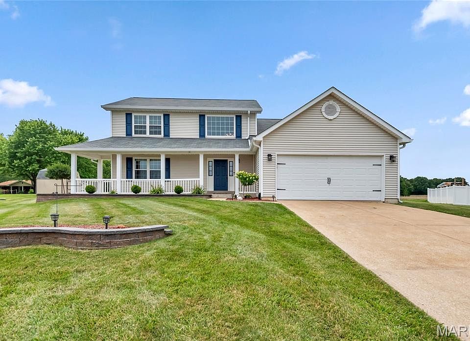 This Beautiful 2 Story sits on a cul-de-sac lot that backs to a farm field providing peace and tranquility. A really great size lot. Lush landscaping only accents this home. A wrap around porch gives a great touch to this beautiful home. Updated roof and HVAC system. Once inside, you will enter the 2-story entry foyer and open the staircase. Updated half bath on main level. The formal living and dining room provides all the extra entertainment space you will need. It could also be used as office space. Check out this cozy updated kitchen custom cabinets*SS Appliances*tile back splash*solid surface counter tops*pantry and breakfast bar. The breakfast room is spacious and provides access to the huge deck 18 x 38 with a pergola. Relax in the family room offering wood burning fireplace, custom wood mantle. Wood flooring accent most of the main level. Main floor laundry. The oversize finished garage has a 7-foot extension on one side. Upstairs offers a primary suite with walk in closet*updated bathrooms, adult height vanity and a sitting room great for relaxing while reading or having a coffee break. Hall bath has been updated as well and features adult height vanity. Two additional spacious bedrooms with large closets. 6 panel doors, most of the house has recently been painted on the inside. Tilt windows Outside there are plenty of spaces for family get-togethers. The deck is great for any BBQ ‘S You will love the privacy of the back yard. Close to the new school being built!