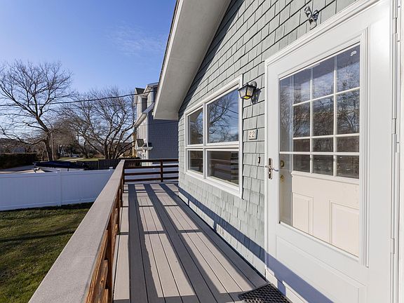 Available now, this unfurnished, year-round single family home for rent in Jamestown, located in the shores area and walking distance to the water. This bungalow style home offers a sun filled open concept eat-in kitchen and living area with cathedral ceilings. The newly renovated kitchen comes equipped with a farmers sink, new cabinets, stainless steel appliances and enough room to comfortably seat up to 4 guests. The living area has sliding glass doors which lead out to the wrap around deck, which creates additional space for entertaining. Off the kitchen/living area, there are 2 bedrooms with plenty of closet space and a shared hallway bathroom with large vanity, linen closet and combination bath/shower.