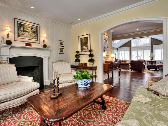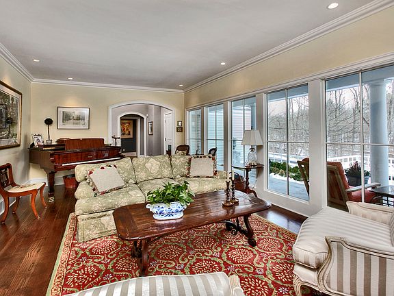 Beautifully renovated & expanded, light-filled Cape set up from the road w/views on 2 private acres w/flowering wisteria on pergola in front of the house. Home features 3 BR, 2.5 BA & 3,300 SF of living space. New chef's kitchen w/granite counters, Wolf/Miele/SubZero appliances, temp controlled wine cellar & stone fplc. Adjacent cathedral ceiling family room w/skylight & French doors leading to stone terrace. Lovely formal dining & living room w/fplc, plus study/4th bedroom. 1st fl master suite w/marble bath, vaulted ceiling & his/her W/I closets. 2 BRs & a vaulted ceiling bath on the second floor. Stunning trim, archways, hardwood floors & sound system throughout. Low maintenance, mature landscaping. A wonderful home to live and entertain.