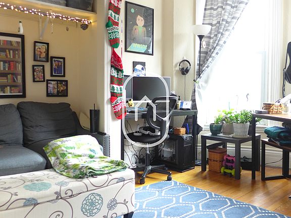Bright & Cozy Studio Near Green Line with Included Hot Water Living Space: Spacious studio with a large foyer Kitchen: Well-equipped kitchen with a dishwasher Bathroom: One full bath Utilities: Hot water included Pets: Cats allowed Laundry: In building Parking: Street permit parking available Location: Close to the Green Line Nearby: Steps from restaurants and shops