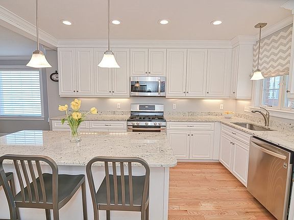 Modern luxury presides throughout every inch of this meticulously maintained, thoughtfully designed 4 Bedroom 3.5 Bathroom young, end-unit Townhouse. Natural light shines in! Impeccable hardwood flooring throughout all main rooms and stairs. Remarkable Kitchen boast expansive granite island, an abundance of countertops, custom cabinetry, SS appliances and perfectly placed bench. Kitchen flows seamlessly into large Dining area and is meant for entertaining. Living Room is perfectly situated with Gas Fireplace and slider to private composite deck with tranquil views of the town field. 3 inviting Primary Bedroom suites â one on 1st floor & two on 2nd floor all with private pristine bathrooms and sought-after custom walk-in closets. Full spacious basement with daylight windows waiting for your touch. BONUS - This unit comes with an extra driveway!!! Premier location - close to major highways, Route 1, stores, train & Patriot Place! OPEN HOUSE THURSDAY 4/1 5-6:30 & SATURDAY 4/3 11-1.