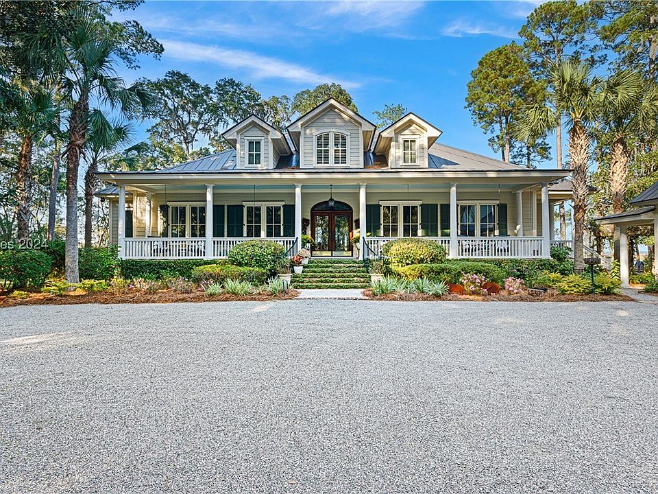 Surrounded by lush Lowcountry flora w/ expansive views of Chechessee Creek, this majestic Callawassie Island estate exemplifies the finest in Southern Living. A welcoming front porch set in ivy and brick guides you into the foyer. Soaring ceilings and rich hardwood floors are abundant in the great room and gourmet kitchen off the dining room. Adjacent is a massive Butler's pantry, wine cellar, and laundry room. A spacious screened in porch can be entered from the luxurious owner's suite. The 2nd floor boasts 2 beds, 2 baths, w/ 2nd screened porch. This property rests on a private Lot w/protected green space at the end of the cul-de-sac.