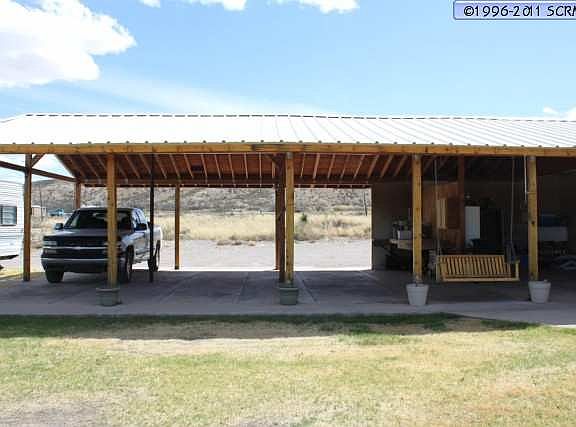 Rural property adjoining the Gila River in Virden, NM, includes a spacious master bedroom suite with hobby or office area and sitting area, 2 nice size bedrooms and hall bath on upper level. A few steps down is the entry foyer with steps down to a small basement/storage area. On the next level down is the living room which is very large and open to the dining area where there's a pellet stove to heat the home. The kitchen is large with room for a big dining table and lots of cabinet/counter space. Outside is a huge 3 car carport that also provides a work/storage space and covered patio area with nice size grass yard area. This home overlooks the Gila River which the property appears to adjoin. A current survey will reveal that as the riverbed moves.