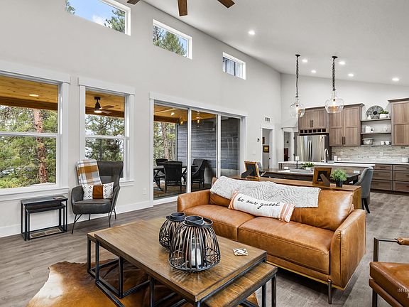 Amazing Views! Practically new 2574 sq. ft. rustic modern home only 45 min.from Boise. Over an acre of mountain top living. Easily accessible and very quiet. Two 10x10garage doors + ATV Bay! You'll enjoy all the modern features of this 3 bed+office, 3.5 baths, 2 bonus rooms, mountain home. Beautiful Modern kitchen w/hickory cabinets, 36"new(2023)Induction Oven and lg butlers pantry. Enjoy dinner around the banquette style table or outside on the 335 sq ft. covered desk. Enjoy the high efficiency wood burning stove in the winter, while watching the snow fall and the wild life pass by. The metal siding and metal roof make for low maintenance. During the summer take your ATV and explore the back country or take a drive to Idaho City, put your boat in at Robie Creek or Lucky Peak boat docks, both just a short drive away. Driveway and walkway have been preplumbed for heated water, so no shoveling in the winter. Sit around the firepit and enjoy the mountain air and sound of Eagles, Elk and wild Turkey.