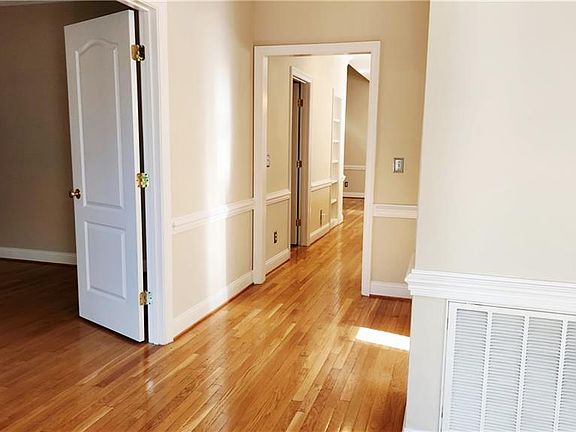 This impeccably maintained townhome offers a blend of style and functionality. A thoughtful update adds direct access to a full bath from the lower-level room, creating a convenient first-floor bedroom suite w/potential closet using the existing pantries. The open floor plan features a kitchen with a gas stove, stunning cabinetry, stainless refrigerator, and expansive island perfect for cooking and entertaining. The 2-story living room fills with natural light from both high and low windows, highlighting the gorgeous hardwood floors throughout the main level. A laundry room w/utility sink & a half bath complete the lower level. Upstairs, you’ll find three bedrooms, incl a spacious primary suite w/step-in shower and walk-in closet, plus an additional hall bath. Enjoy the outdoors from the deck overlooking trees and nature—offering a glimpse of the lake once the leaves fall. Located near walking trails and w/optional access to the community pool. Minutes from shopping, dining & highways.
