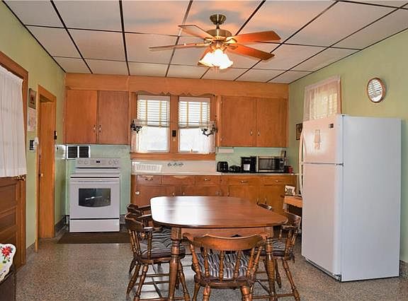 Although the home could use some updates, you'll find this property well maintained by the same owners for many decades. The home features huge rooms, newer heating system and newer roof. The living room has hardwood floors. The kitchen is massive. All 3 bedroom have closet space plus a walk-in closet. There is an attached oversized garage that you will enjoy on those inclement days and a 2 story barn at the back of the property. The lot is unusually large for in-town and you will appreciate all the off street parking. This is one home you don't want to miss.