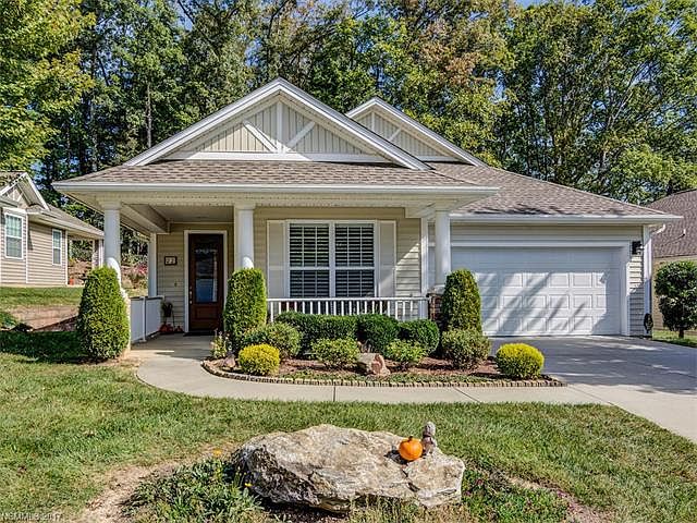 Sitting front porch, Open floor plan with vaulted ceiling in Great Room, Gas log fireplace, Wood and tile floors in living areas, Split bedroom floor plan with 9' ceilings,, Large master suite with 2 closets, Fenced back yard. Located in quiet culdesac close to Blue Ridge Comm. College. Great walking neighborhood, Community park. Yard maintenance included in HOA. Off street driveway parking for 4 guest vehicles. See Virtual Tour for More Photos