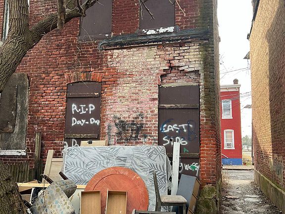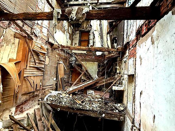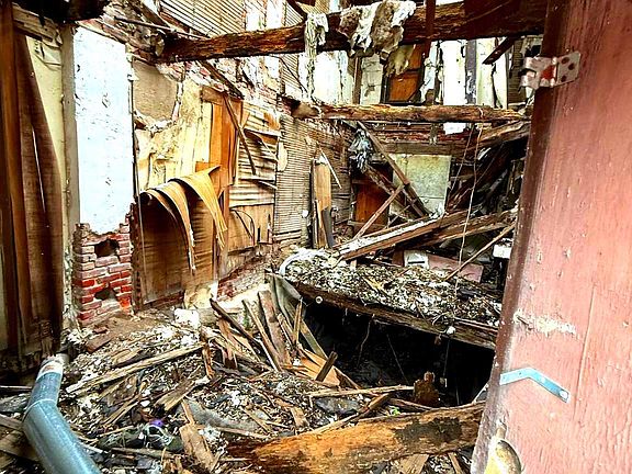 Do not enter the premises. The second floor has collapsed onto the ground floor, and the property requires complete reframing. Viewings are by appointment only. This is an AS-IS sale, and the buyer is responsible for meeting all city requirements.
