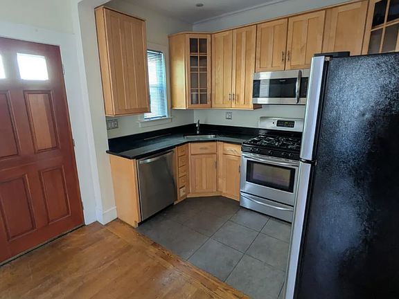 Fully renovated town house style apartment. Modern kitchen with stainless steel fridge, microwave, dishwasher and waste disposal. New windows, insulated (low heating bills) refinished hardwood floors, including washer and dryer in basement. 9 rooms in total, kitchen, sitting room, dining room, two bathrooms (one full and one half) and three full size bedrooms all with full size closets, full finished basement room for office etc. 2 off-street parking spaces. Economical Gas heating burner. Large amounts of dry storage space. Off Washington Street near all amenities, YMCA, 57, 501 (express) city bus routes and shops. Easy street parking, no city sticker required on street parking. Nearby public transportation: Bus: 501 Washington St @ Foster St (0.08 mi) Bus: 64 Brooks St @ Faneuil St (0.46 mi) Bus: 86 Chestnut Hill Ave @ Academy Hill Rd (0.16 mi) Bus: 65 Chestnut Hill Ave @ Veronica Smith Ctr (0.16 mi) Tram: B Chiswick Road (0.58 mi)