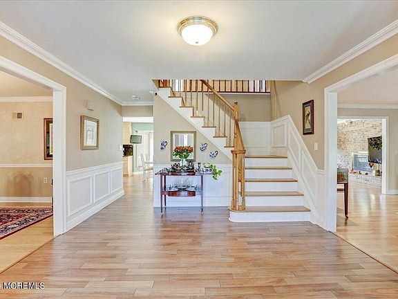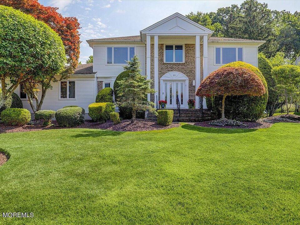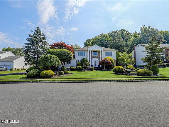 Absolutely Stunning 5 Bedroom Center Hall Colonial 'Buckingham Model' w/ Full Finished Basement Situated on a Premium Lot on a Private Cul De Sac Street, in the Heart of Marlboro! This beautifully maintained property offers a perfect blend of elegance and comfort, making it an ideal home for modern living. As you step through the fully insulated double glass front entry door, you are greeted by a spacious foyer with dual closets, setting the tone for the attention to detail found throughout the home. The living and dining rooms boast hardwood flooring and bay windows, complemented by crown molding and decorative molding that add a touch of sophistication to the space. The eat-in kitchen is a chef's dream, featuring granite countertops, a granite backsplash, a center island upgraded with electric, a bay window, and stainless steel appliances. This space seamlessly flows into the family room, which is adorned with hardwood flooring, extra windows, and a cozy gas fireplace, making it perfect for both everyday living and entertaining.