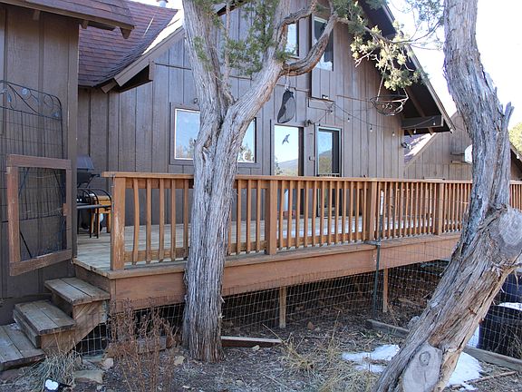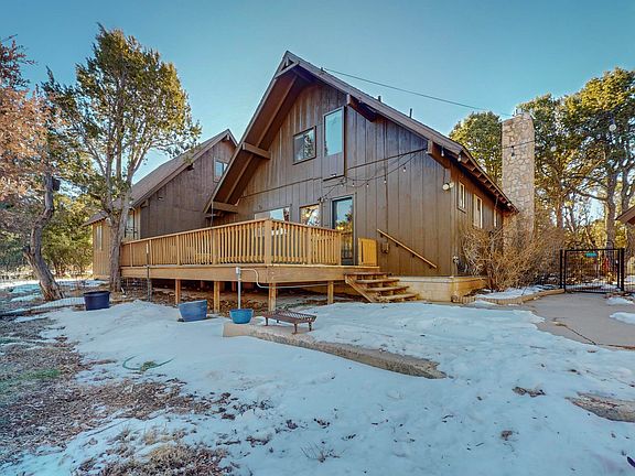 Charming Mountain Chalet on heavily wooded double lots in Sierra Vista, boarding 700 acres of the Milne/Gutierrez Canyon open space for your back yard and hiking enjoyment. 4 Bedrooms, 2 1\2 Baths, wonderful separate upstairs primary suite with balcony. Detached garage and additional shop building. Hardwood floors, knotty pine walls and ceilings, large back deck, fenced area for dogs. Large stone fireplace and separate woodstove.