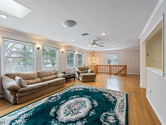 Spacious expanded custom bilevel features hardwood floors through out, large family room with second staircase, living room with bow window, eat-in kitchen, formal dining room, master ensuite with additional sitting room, full bath with jacuzzi tub, shower and walk-in closet. First level has second kitchen, full bath, family room with separate room with wet bar, an office/library and 4th Bedroom. All rooms are large and spacious. Close to JFK Hospital, bus and Metropark Train
