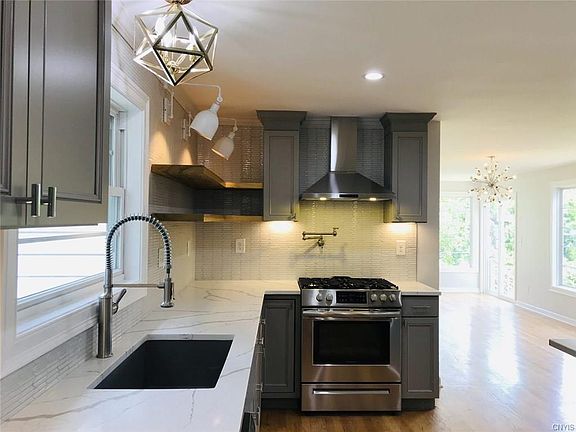 This property is a 3 Bedroom/2 Bath ranch-style home that boasts an impressive open floor plan at just under 2000 square feet. Located within the New Hartford School District, this home is nestled on a large corner lot in a very quiet and relaxing residential neighborhood. Whether you are upgrading, downsizing, planning to entertain, or just want that turn-key property, this home will assuredly meet your needs. The litany of items addressed in the renovation include the following: new roof, new windows, new gutters, new o/d hot water system, new electric panel, new kitchen w/stainless appliances and Calacatta Laza quartz countertops, new doors throughout w/new chrome levers, new tiled bathrooms, walk-in shower, luxe tub w/chrome tub filler, completely refinished hardwoods, and much more.