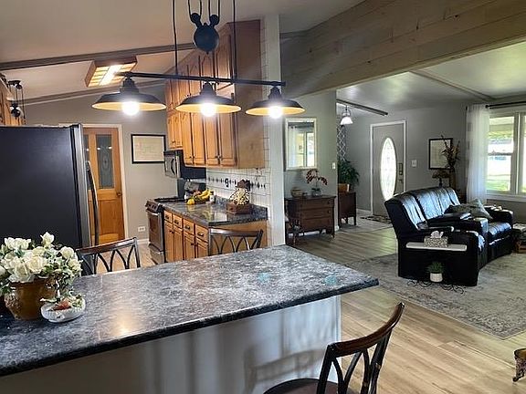 BIG CHAPMAN LAKE, all-sport lake, access with tremendous LAKE views from TWO levels!! Extraordinary property, checking all the boxes! 2200 updated living square feet, 3 bedrooms, 2 baths, with attached 2 car garage, .75+/- A lot adjacent to agricultural acreage, 4-car detached garage for all the water toys and more! New HVAC system, new upper roofing, stainless appliances, decking refreshed, all new first floor deluxe vinyl (driftwood), fresh paint, white trim, solid six panel doors, barn doors and so much more. Enjoy the open concept with living, eat-in kitchen, and family room! Fantastic for the lake gatherings and bringing loved ones together. Vaulted ceiling accommodate bountiful kitchen cabinet storage, combination white and natural oak finishes, black/white/gray designer ceramic backsplash, spacious breakfast bar, large walk-in pantry closet, easy access to large backyard deck for grilling and outdoor entertaining. The 480 square foot family room displays a floor to ceiling stone fireplace/wood furnace, vaulted-two story ceiling of seasoned knotty-pine, solid 3/8 inch hickory wood flooring, attractive grand bay window letting in western daylight! Master suite, 480 square feet, with 24 ft wall of window overlooking the water!, walk-in closet, jet tub, ceramic shower, your private get-away. Home has been inspected. Home has deeded access to 30 feet on the channel in front of the home within 40 feet of the property. Survey available. What an opportunity!! Open House, Thursday, 8/26/2021, 5-7