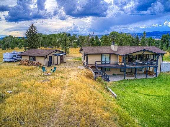 Hidden gem 6.081 acre property in desirable Cottonwood Acres. This remodeled 3360+/- sq ft family home boasts 2 kitchens, large game room, walk-out basement to a covered patio. A Montana dream with 360° mountain views featuring the Madison Range. Enjoy morning sunrises from the quaint covered deck with custom barn door. Abundant wildlife wanders through the well landscaped yard with established trees. The 3bd 3ba home is set up for families or fishing/hunting guests with two full kitchens, comfortable family room & oversized rec room. Lower level features a work out area 3rd bedroom & fly tying room that can also be a 4th non-conforming bedroom. The master bedroom opens to the deck. Master bathroom has double sink, separate commode room & walk-in closet. 2nd main level bedroom has walkthrough bathroom. This home is designed to be the ideal vacation home with plenty of space for entertaining. Montana recreation surrounds with access to fishing, boating, hunting, skiing & more.