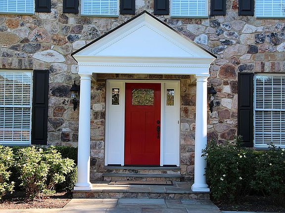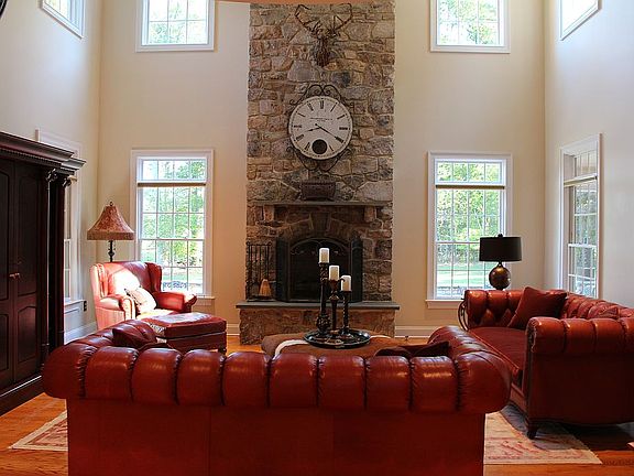 Elegant stone front Estate custom built by Glenn Hess set on 4.86 gorgeous acres in Solebury. This Home has been designed for fabulous entertaining; Large blue stone patios, a gathering area with outdoor stone fireplace,heated salt water pool & spa, built in grill area. Set at the end of a cul de sac the lot allows for the ultimate in privacy and has striking professional landscaping to set the scene. A two Story entry with hardwood floors and a split staircase flanked by a formal living room and dining room with butler's serving bar. Throughout the home there are transoms, double crown molding, raised panel wainscoting, tray ceilings, wide doorways, and high ceilings, so many refined and upgraded details. There are two Gathering Rooms, the first is a spacious and impressive two story media room with walls of windows, large cherry bar and island with bar sink & mini-refrigerator. The second has a floor to ceiling stone fireplace and ample windows. The Gourmet Kitchen contains high end appliances, granite counters, custom tile backsplash and is open to the Breakfast Room. The lower walk-out level has a tile floor and offers a full Bath with another laundry, large living area and Kitchenette. Upstairs is the Master Suite complete with luxurious Bath, fireplace, two walk-in closets and a bonus room which could be an additional office or exercise room. A princess suite, and two more Bedrooms sharing a Bath. Additional highlights: private first floor Office with built-ins, Mud/Laundry Room with custom cabinetry. Three-car attached and three-car detached heated garages, a whole house generator, natural gas, central vac system.