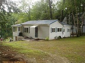 Affordable waterfront camp on scenic pond with great bass fishing. Home features enclosed porch with new windows, new deck, metal roof. Includes dock, boats and motor, furnishings. Nice lawn right on the water. NEW SEPTIC AND WELL AND INSTALLED 9/12.