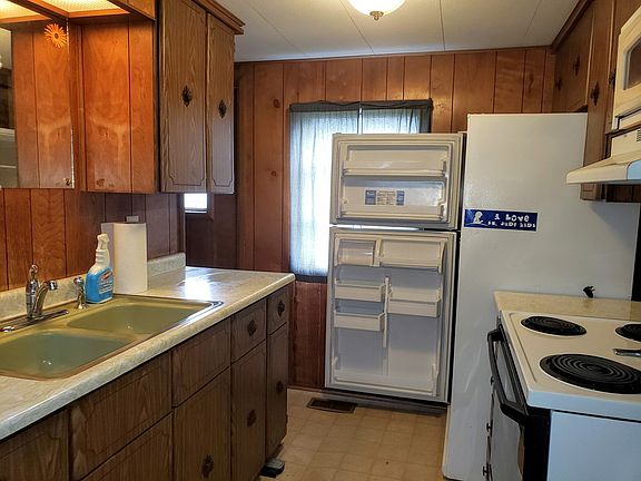 Perfect location! 1972 two bedroom one and a half bath single wide mobile home with a large attached carport which also has an attached closed shed on a beautiful 0.35 acre sloped lot. Refrigerator, range, and window AC unit included. Oil forced warm air heat. Some soft spots in floors. Cash or portfolio financing with a lender who will do a pre 1976 mobile only please. Public sewer and private well. Just a few minutes to Rt 322 and amenities