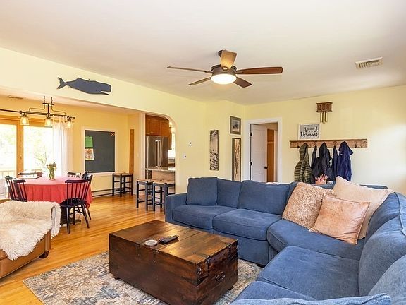 Beautifully updated ranch home in a great family neighborhood! Desirable and convenient Hingham location. Open concept living/dining room with fireplace surrounded by custom built-ins. Slider door accesses a lovely deck and patio space, overlooking a peaceful and flat yard with mature trees and new fencing. Come back from one of the nearby beaches and use the new outdoor shower! Kitchen recently remodeled. Three good-sized first floor bedrooms, and a beautiful updated family bathroom with radiant floor heating. Nicely finished lower level with family room which walks out to backyard, office/additional fourth bedroom, a recently-updated half bathroom, laundry room, & garage access. Garage already wired for an electric car. New roof & gutters, new gas boiler (recently converted from oil), and new water heater! This home is move-in ready!