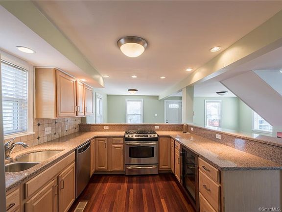 Incredible colonial located near the sea wall. Open floor plan with granite breakfast bar and updated kitchen. Stainless steel appliances, under cabinet lighting, and wine fridge make this an entertainer's dream. Cherry hardwood flooring Finished 3rd floor with wet bar and full bathroom can be used as a master bedroom suite or entertaining room. Individually zoned heat and central air for maximum comfort. Outside enjoy a private fenced in back yard, with deck off the kitchen and gas grill connection so you never have to run out of propane mid cooking. Enjoy all that New Haven has to offer, with close proximity to Lighthouse Point, parks and highways.