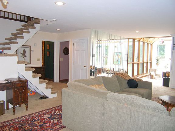 Contemporary Cape Style Home set on a private large wooded lot. This home boasts 3,067 Square Feet of living space, 3 Bedrooms and 2 full baths. The first floor features include an open floor plan, concrete floors, eat in kitchen with pantry, spacious Living and Dining Room, step up Family Room with a fireplace and a first floor solarium. The second floor has 3 spacious bedrooms with wall to wall carpeting. The Master Bedroom has a private bath as well as access to a 2nd floor deck. There is a 2 car garage, Central AC, New Roof & Gutters in 2016. The home has oil heat but is also serviced by a Cyclone Wood Fired boiler as a secondary heating system offering big savings on your heating costs. This home provides a great school system and the location offers easy access to 495. This is a must see.... bring your design ideas and make it your own.