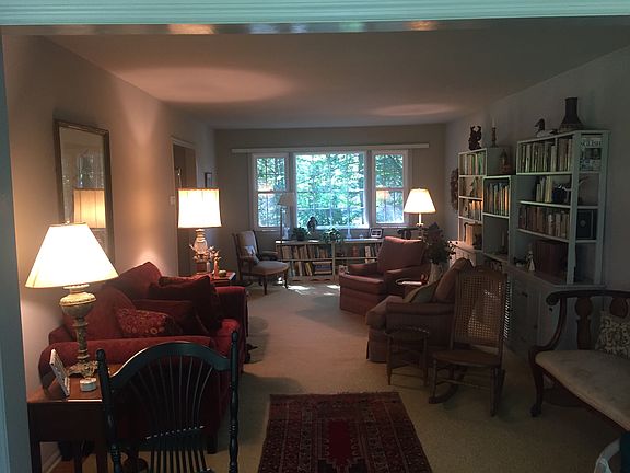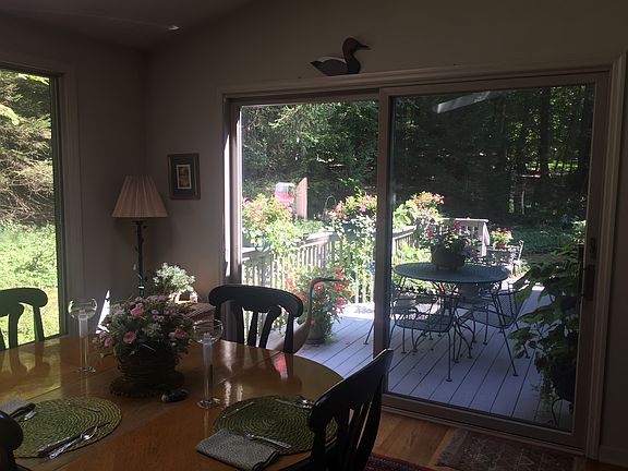 This center hall colonial sits in a park like setting. It features a large year-round sunroom with windows looking out on the woods and garden; it's beautiful and comfortable in all seasons. There are four bedrooms, 2 ½ baths, a lovely spacious foyer, eat-in kitchen, fireplace, built-ins, and hardwood floors throughout. The excellent school system, city water and sewers, and ample side entry two car garage with level driveway, make this the perfect dwelling for a growing family. The home is located within walking and biking distance of the exceptional elementary school and its fully equipped playground. The neighborhood is an easy commute by train or bus to New York City and features homes which are set back from the road.