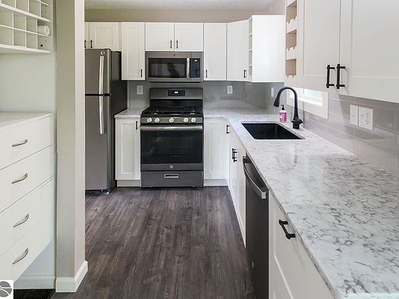 COMPLETE RENOVATION! All rooms have been completely remolded! The bathroom and kitchen are new from top to bottom. Included are new windows, new kitchen appliances, new washer/dryer, new hot water heater, new well pump. The homes exterior has been freshly painted, new roof completed in 2018, and the lower level is a blank slate, ready for your own design. This home is located just minutes from downtown Traverse City on a corner lot just south of town. It really is a must see!
