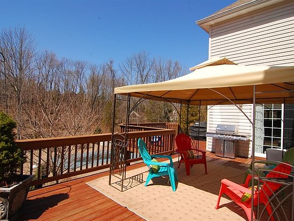 Room for Everyone! 5000 sqft Colonial. Nearly 2 1/2 Acres of Professionally Landscaped Park-like Property. Heated Inground Pool w/Patio Surround. Multi-tiered Deck. Perfect for Outside Entertaining! Dream Kitchen with Enormous 11' Granite Center Island, Subzero Refrigerator, Dual Dishwashers and Wine Cooler. Offers 4-5 BRs & 5 Full Baths. Huge Master Bedroom Suite with Sitting Room plus His and Her Walk in Closets, Skylight and Tres Ceiling. Master Bath with Jetted Tub & Stall Shower. Hardwood Floors. Finished Walkout Basement with possible In Law Suite. Lots of Living Space for Multi-Generations under one Roof. 2-Car Garage. Approximately 10 minutes from Interstate 80.