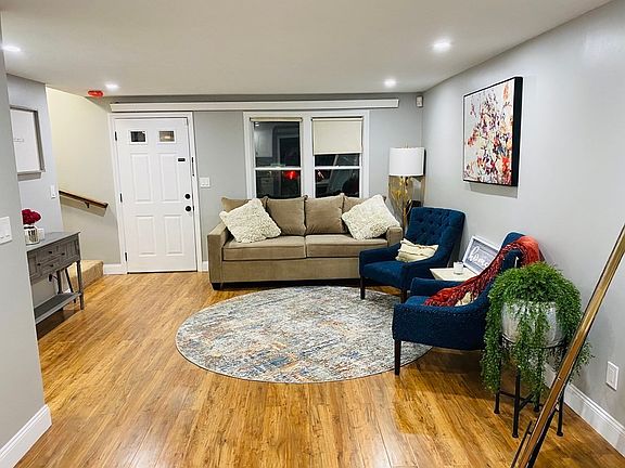 Newly renovated townhouse close to shopping, expressway, and commuter train! Nestled on a quite dead-end street, this charming 2 bedroom home was recently updated in 2020. Walk into the open concept living and dining space, with a half bath and kitchen on the first floor. Private patio area beyond the double glass door with ample green space. Upstairs, you'll find two well appointed bedrooms and full bath with exposed beam and an unexpected and lovely skylight. Continuing up to the third level will bring you into the cozy, wood paneled bonus room. Home office, kids schooling station, playroom, guest bedroom? You decide! Gorgeous gleaming hardwood, quartz countertops, white shaker cabinetry, and beautiful finishes throughout add even more value to this smartly laid-out townhome. Low condo fees and close to shopping and the expressway make this home an easy choice.