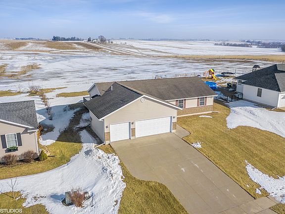 Donât miss this newer 2004 built ranch with an open floor plan, vaulted ceilings, & over 2300 SF of living space, in the College Community Schools. If you want to live out in the country, and also be in town, this is the home for you. It is located on the edge of Walford, within minutes of Cedar Rapids, with open lots across the street that will not be developed, & a field behind it. From the front entryway the vaulted open living room gives you that cozy welcoming feeling. The kitchen features nice oak cabinets, newer back splash, a pantry, & a breakfast nook to enjoy. The formal dining room has patio doors that lead out to the deck, so you can relax and over look the spacious flat back yard for family entertaining. The upper level also features a master bedroom and bath, 2 more bedrooms, a full bath, and a first floor laundry area. All flooring is new throughout, everything is freshly painted with neutral colors, & there is neutral ceramic tile in the kitchen and entryways. The lower level features the family area, a bedroom with large adjoining room to use as a master closet and is plumbed to add a full bath, plus a large storage area. The three stall garage is large enough for your vehicles and outside items. HOA covers all the water in this home, which is a community well, & the home has city sewer. Appliances that stay: Range, Hood Fan, Newer dishwasher, newer refrigerator, newer washer & dryer, new sump pump; newer water heater; and water softener. This home is move in ready in a quiet area, with fun neighbors, and is very conveniently located off HWY 151, close to Cedar Rapids, Amana and Iowa City. Measurements and updates per Assessors Site.