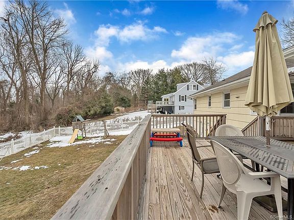 Amazing Price for Desired Nichols section in Trumbull CT. Ideally located for commuters as well as a convenient to all major shopping amenities. Professional landscaped front yard with oversized driveway adds to the curb appeal of this home. When walking through the front door you are welcomed by the living room with that large stone fireplace that makes a New England house a home during the long winter months. Hardwood flooring stretch the entire first floor and compliment the freshly painted walls and ceilings. As we make our way down the hall, past the walk-up attic where there is plenty of storage space we are greeted by large eat-in open kitchen and a step-down dining room. Enjoy the breeze as you step out the French Doors to your large deck which was redone two years ago along with the gutters (ability to add a hot tub to deck) that overlooks the fenced in backyard. Imagine the summer BBQ's... In case the summer breeze is not your thing a new central air system has been installed. Downstairs the basement is completely finished adding over an additional 900 sq feet of living space. New furnace and hot water heater installed six months as well. Nothing to do but move in. Addendum: Buyer must hook up to sewer within 90 days of purchase. See you soon!