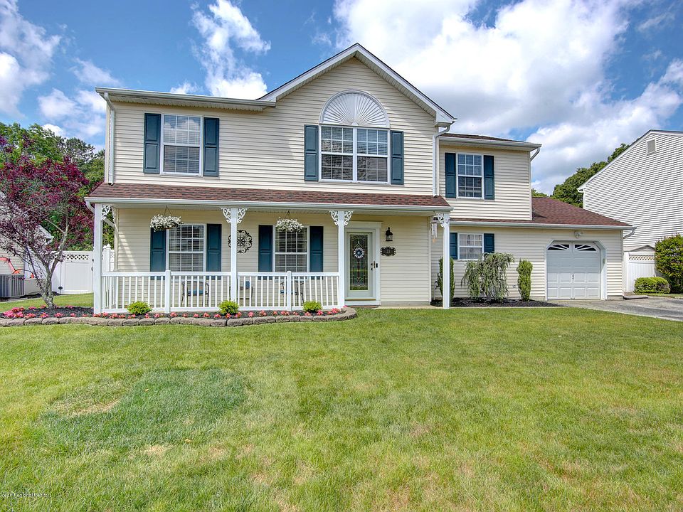 HONEY STOP THE CAR! THIS IS THE ONE YOU'VE BEEN WAITING FOR-- Curb appeal galore w inviting front porch , it welcomes you to this Updated and well maintained 4 bedroom colonial w inground pool backing wooded area... Enjoy this lovely home w newer kitchen w stainless appl pckge, quartz ctrs and tumbled marble backsplash.. Comfortable and inviting living rm and dining rm w newer flooring and decorative moldings . Relax in the family room w sliders to oasis yard w spacious patio and fenced inground pool backing to lush treed area .. Four roomy bedrooms for the whole family and two updated baths w designer tile .. Five year young HVAC and water heater,,, Enjoy the benefits of the 3yr old timberline roof w 50 year warranty... Plus NJ Natural Gas Energy Audit done .Ringdoorbell and flood light camera w moti