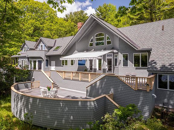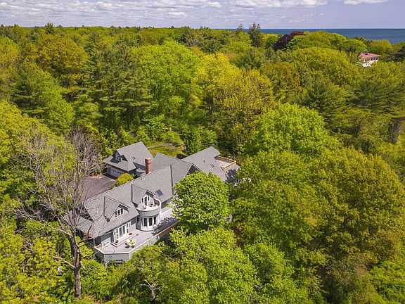 Experience one of the most extraordinary settings at Godfrey Cove. This uniquely private estate boasts nearly 25 acres along w/ a 400 foot pebble beach. This shingle-style residence affords unrivaled privacy. The thoughtful linear design takes full advantage of magnificent views from nearly every room and harmoniously blends with the natural surroundings. Upon entering the main foyer, you are immediately struck by dramatic high ceilings, wide open living spaces and an abundance of windows that bathe each room w/ southern light. French doors from the dining area lead to the water side decks perfectly suited for al-fresco dining or an enchanting setting from which to host summer events. The chef's kitchen features a six-burner Thermador gas range, ice machine, dishwasher, and center island. The breakfast nook is outfitted with many built-ins, drawers and wine fridge. A handsome soapstone gas fireplace sits prominently in the grand living room surrounded by custom seating and magnificent vistas. With access from the main living area or a separate exterior entry, the heated sunroom connects to the in-law suite with kitchenette and doors that lead to the water side deck. Head upstairs to the newly remodeled primary bedroom suite complete with sitting area, wet bar, private water side balcony and a spa-like bath with custom tiled shower. Additional primary suite in the lower level with exterior access, second level features an in-home office space.