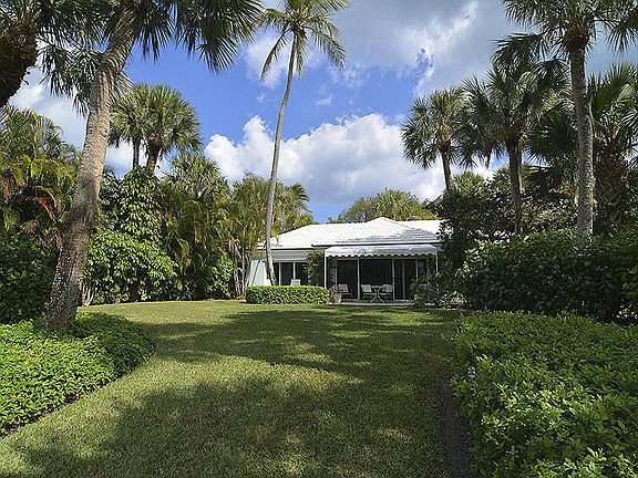 This 6024 square foot single family home has 7 bedrooms and 7.5 bathrooms, including a guest house with 2 bedrooms, 2 bathrooms, kitchen, and family room. It has a detached 2 car garage. The property is .77 acres, with views of the Jupiter Island Club golf course and the Indian River.