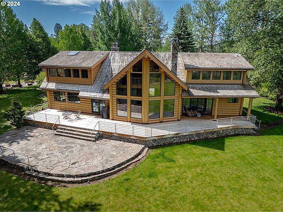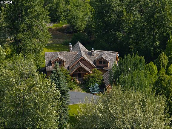 Welcome to your dream retreat! Nestled on 20 acres of pristine, irrigated land, this stunning custom log home offers unparalleled luxury and privacy. Located along the tranquil White Salmon River, this property boasts low bank river frontage, providing direct access to serene waters and breathtaking double mountain views. As you step inside, you'll be captivated by the soaring ceilings and the grandeur of the river rock fireplace, creating a warm and inviting ambiance. The home features high-end finishes throughout, seamlessly blending rustic charm with modern elegance. The expansive open floor plan is perfect for both intimate family gatherings and grand entertaining. The gourmet kitchen is a chef's delight, equipped with top-of-the-line appliances, custom cabinetry, and a spacious island that doubles as a breakfast bar. Retreat to the large primary suite, where you can unwind in style with stunning views, a spa-like en-suite bathroom, and a private deck out the sliding french-doors. Additional bedrooms, loft and family room offer peace and quiet to enjoy a good book, games or just appreciating the roar of the river or stunning Mt Adams view. Above the garage, you'll find charming guest quarters, offering privacy and comfort for visitors. This self-contained space is ideal for extended family stays or could be used as a studio or home office. Outdoors, the property is a nature lover's paradise. The irrigated pasture is perfect for horses or gardening enthusiasts, while the surrounding trees provide seclusion and a serene backdrop. The low bank river frontage offers a peaceful spot for fishing, kayaking, or simply soaking in the natural beauty.This exceptional property is not just a home; it's a lifestyle. Experience the perfect blend of luxury and nature in your own private sanctuary on the White Salmon River. Don't miss this rare opportunity to own a piece of paradise.