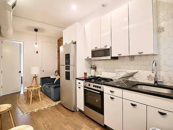Beautiful 3-Bedroom, 2-Bathroom Duplex Pets Allowed Walk to L,J,Z,A, and C trains. Step into this spacious duplex, where modern elegance meets classic charm. Living Area: Airy and inviting with exposed brick, recessed lighting, and soaring ceilings. Kitchen: Sleek and fully equipped with stainless steel appliances, stone countertops, and custom cabinetry. Bedrooms: Generously sized with stylish furnishings, including Casper beds, side tables, and custom-built closets. Bathrooms: Thoughtfully designed with a spa-like ambiance, featuring a soaking tub, glass-enclosed shower, and designer tiling. Bonus Space: A versatile recreational room with direct access to a private garden. Floors & Storage: Gorgeous hardwood floors throughout and plenty of closet space for all your storage needs. Building Perks: Rooftop deck with stunning views Tranquil common garden On-site laundry for convenience Fully equipped gym Don't miss out on this perfect blend of modern comfort and classic charm. Book a showing today! *No Broker Fee*