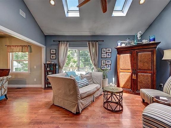 New England charm from the outside and a contemporary open floor plan on the inside! Set on a lovely quiet street, this home has direct access to the water just around the corner. Secure a mooring or drop in your kayak! The main floor opens up to a vaulted living room, dining room and updated kitchen with brand new stainless appliances. Two generous bedrooms and a full bath complete the main floor. Just a few steps up from the kitchen is a very large family room perfect for gatherings of any size! The lower level with windows abound is completely framed and plumbed and ready for you to design a wonderful Recreation space, Guest Suits or even a Master Suite. With a 2 car integral garage, private back deck, and a completely fenced yard on over a third of an acre, this home offers amazing privacy and room to grow.