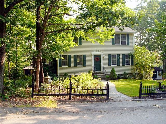CLASSIC COLONIAL - $264,900 Come see this classic Colonial with character! Great flowing floor plan with front to back fireplaced kitchen and 2.5 yr old appliances. Wide pine floors down and in master. New carpets 2nd level, new HW heater. Screen porch with ceiling fan off kitchen. Great landscaping with a detached cedar house. Town water/sewer on tree lined street.