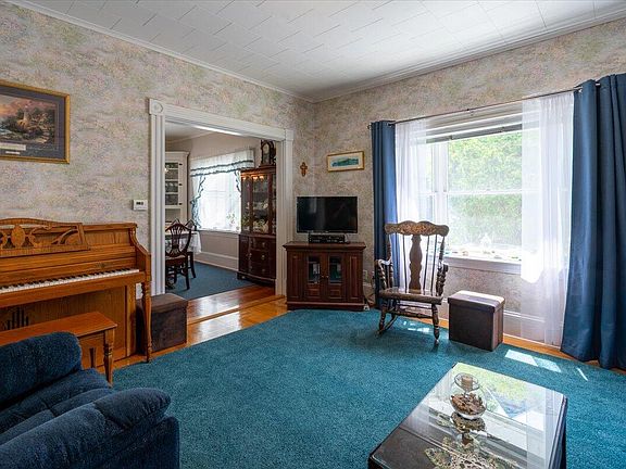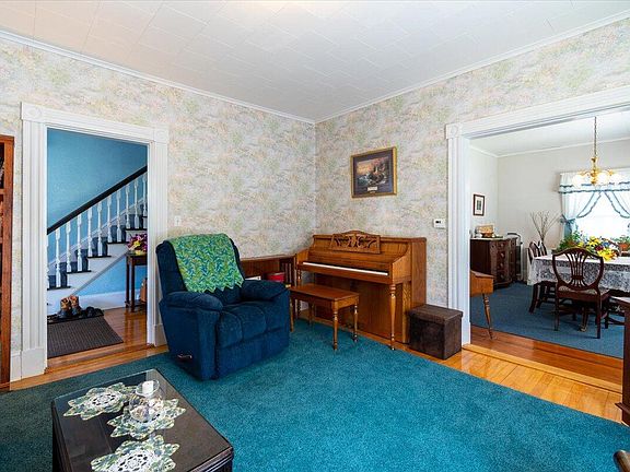 Check out this Classic Colonial set on a quiet dead end street in downtown Bar Harbor! This meticulously maintained home has been in the same family for more than 70 years. A warm, welcoming farmer's porch beckons you to sit and relax to enjoy the evening hours. The first floor includes the living room, a formal dining room and the kitchen. The second floor includes four bedrooms with a bathroom. A third floor includes three more bedrooms. The porch is surrounded by lilacs and rhododendrons which gives some privacy while you're on the front porch. Many high bush Maine blueberries on the side of the home providing a bountiful (and delicious!) crop. The back yard has a raised bed garden with raspberries. The one car garage, down a paved driveway, where 3 cars can park is currently used for a motorcycle garage with additional storage above.