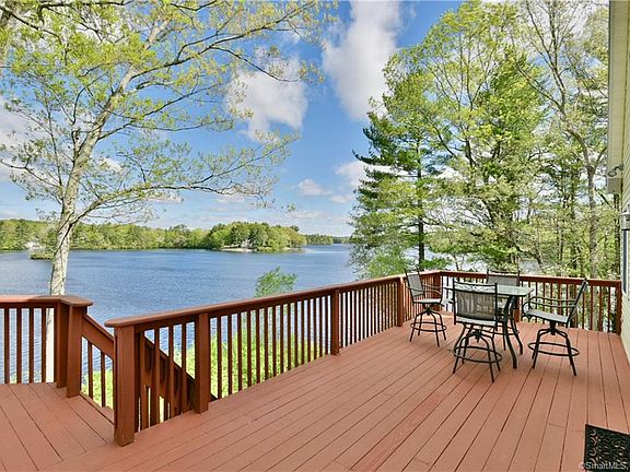 Just in time for summer! 1.5 Acres on the Quaddick facing west with incredible water frontage, views, stunning sunsets, its own boat launch located on a private road!! Over 3100 SF of living area with an attached in-law, connected by a huge great room! The home starts out with ample parking and a 3 car detached garage! As you enter into the newer part of the home, you are greeted with cathedral ceilings, tons of windows and lake views that cannot be beat! The open layout boasts a kitchen with solid counters, panty area, pellet stove, hardwood and tile flooring, and access to an enormous deck overlooking the lake! Second floor has your master suite and upgraded master bath! Tiled shower and stylishly designed! The bonus room that connects the two units has a great entertaining area! The in-law comes with stunning views of the water, an open concept layout with 2 bedrooms and a master suite! The exterior of the home has a spacious front yard, huge 3 car garage, and a great back yard leading down to the water. Sitting area on the waters edge tucked away from the world for peace and tranquility! 3 docks included! All you have to do is move in and enjoy the summer!!