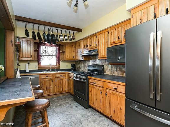 This absolutely adorable New England Colonial is located on a quiet side street set on a large-flat fenced lot with 2 huge storage sheds. Interior features include high ceilings, an updated rustic kitchen with all new slate GE appliances, cedar pantry/closet, new wall to wall carpet in living room, dining room & bedrooms. Both baths have been completely updated, newer windows, heating system & hot water heater only 5 years old, new slider to deck. Located close to all area amenities.
